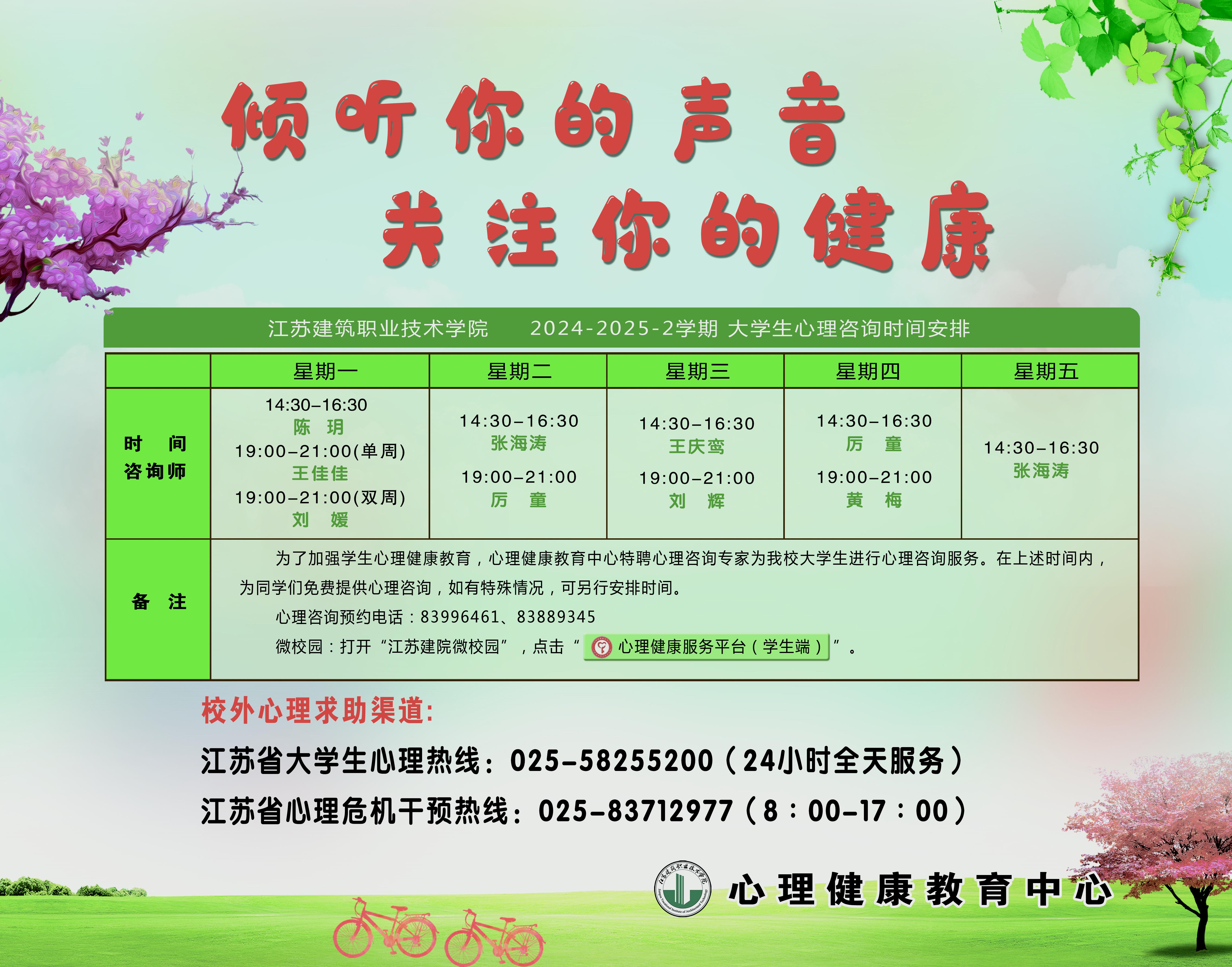 2024-2025-2学期大学生心理咨询值班表