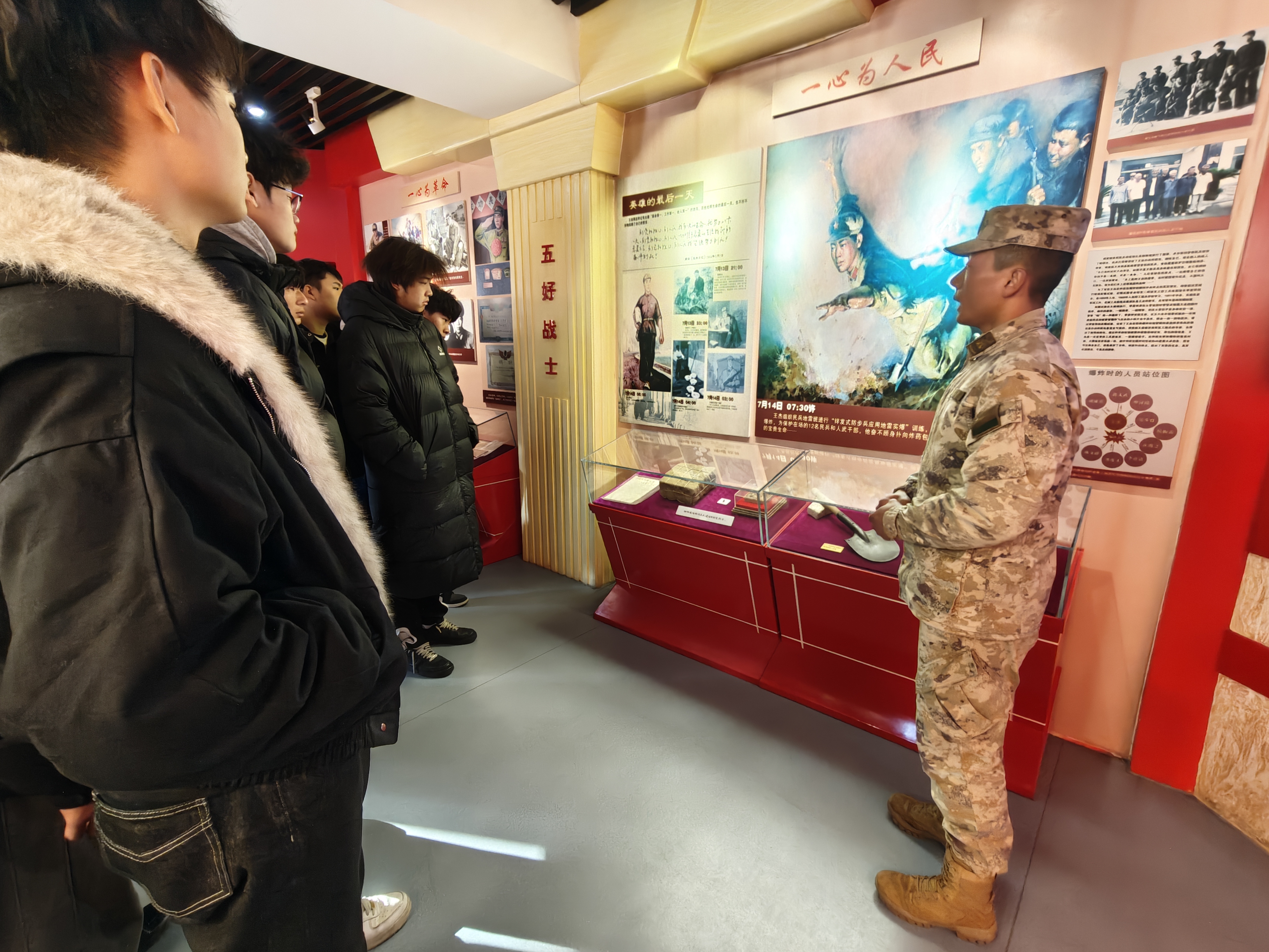 当日下午,慰问团踏入王杰连荣誉室。历史在静谧中苏醒——泛黄的照片、斑驳的勋章与铿锵的日记字句,无声讲述着“一不怕苦、二不怕死”的精神源流。有学生在王杰日记前驻足良久:“这些文字穿越时空,让我听见了信仰的心跳。”轻武器讲解现场,战士利落的拆装动作与专业讲解,引来阵阵惊叹。国旗护卫队成员眼中闪着光:“军营的严谨与热血,让我对守护祖国有了更具体的向往。”